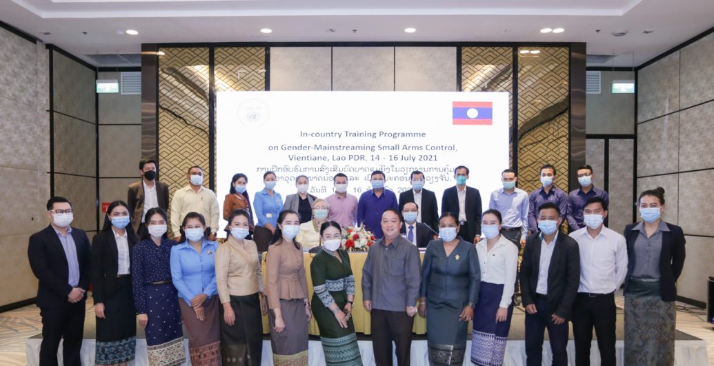 Vientiane, the Lao PDR, 16 July 2021 – As part of a global project in support of gender mainstreamed policies, programmes and actions in the fight against small arms trafficking and misuse, in line with the Women, Peace and Security (WPS) agenda, with funding from the European Union, the United Nations Regional Centre for Peace and Disarmament in Asia and the Pacific (UNRCPD) conducted a training on “Gender mainstreaming small arms control” targeting government officials from Lao PDR. The event was held in a hybrid format from 14 to 16 July 2021. Participants gathered in person at the Crowne Plaza Hotel in Vientiane, while UNRCPD trainers and invited experts, joined the training and delivered presentations virtually.