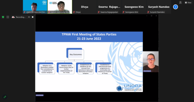 The third edition of the Disarmament Toolkit, jointly organized by the United Nations Regional Centre for Peace and Disarmament in Asia and the Pacific (UNRCPD) and the India-based Non-Governmental Organization (NGO) Prajnya Trust, held online on 26-28 June and 3-5 July, for a total of six sessions.