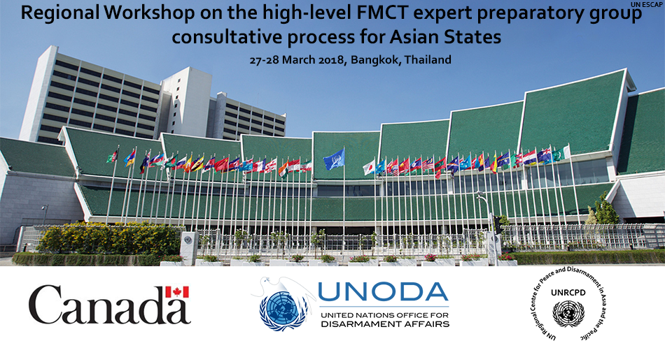 Kathmandu, 26 March 2018 (UN Regional Centre for Peace and Disarmament in Asia and the Pacific) – The United Nations Office for Disarmament Affairs, through its Regional Centre for Peace and Disarmament in Asia and the Pacific is organizing a workshop to engage Member States of Asia in the high-level fissile material cut-off treaty expert preparatory group consultative process. The workshop will be held from 27 to 28 March in Bangkok, Thailand.
