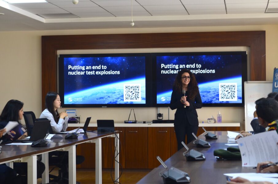 Session 1 opened with a presentation by the CTBTO’s Ms. Sanam Shantiaei to bring participants up to speed on the CTBT itself, including its importance as a comprehensive ban on all nuclear detonations in the world’s international arms control architecture. Without the capacity to test their weapons, it is impossible for states to expand their nuclear arsenals or develop new types of atomic munitions. To ensure compliance, the CTBTO utilizes the International Monitoring System, a network of more than 300 monitoring stations using seismic sensors, hydroacoustic microphones, infrasound and radionuclide detectors. Compiled in the International Data Centre (IDC), real time analysis can detect nuclear detonations anywhere on the planet, with findings passed to signatory states twice per year. Furthermore, the IMS has significant civil and scientific applications, including for tsunami warning and wildlife tracking.