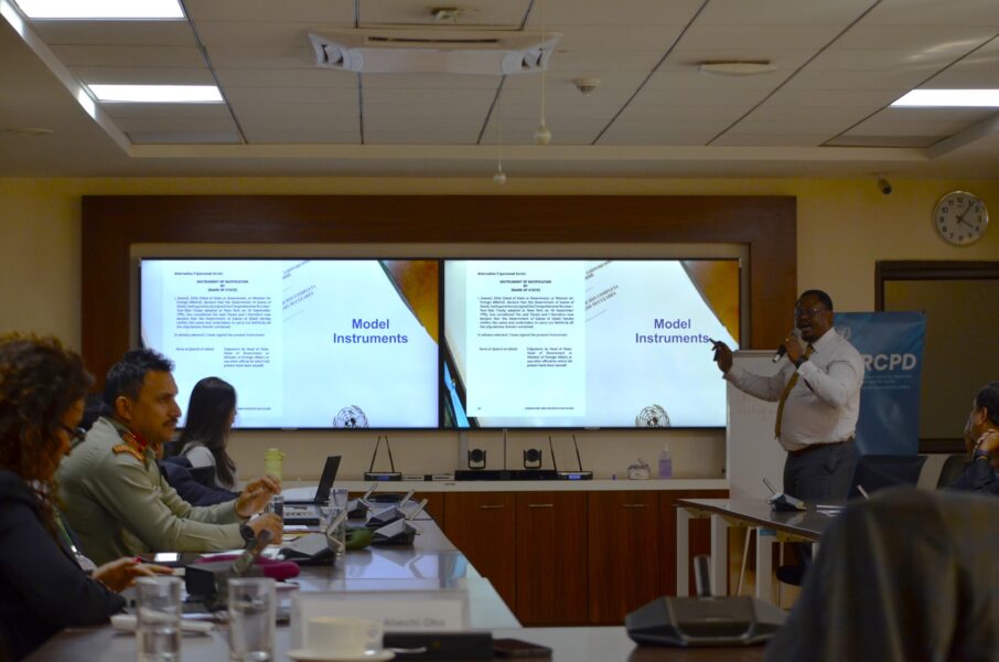 Nepal was one of the first countries to sign the Comprehensive Nuclear-Test-Ban Treaty when it opened for signatures in 1996, in line with their long-standing commitment to a world free from weapons of mass destruction. However, Nepal has yet to ratify the Treaty as of March 2025. To encourage constructive dialogue, identify the road ahead and allay any Nepali concerns surrounding this crucial next step of its relationship with the CTBT, the United Nations Regional Centre for Peace and Disarmament in Asia and the Pacific (UNRCPD) hosted a meeting with Nepali government officials and representatives of key ministries, jointly with the Comprehensive Test Ban Treaty Organization (CTBTO) and Nepal’s Ministry of Foreign Affairs.