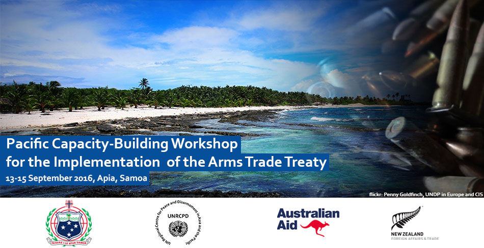 The Government of Samoa and the United Nations Regional Centre for Peace and Disarmament in Asia and the Pacific (UNRCPD) jointly organized a workshop on building national and regional capacity for the implementation of the Arms Trade Treaty (ATT) in the Pacific, in Apia Samoa, from 13 to 15 September 2016. The workshop, which was made possible with the financial support from the Governments of Australia and New Zealand, brought together approximately 25 participants from Pacific Island States to meet with international arms control experts from government, civil society and academia. This event was one of the first of its kind to be hosted on location in a Pacific Island State.