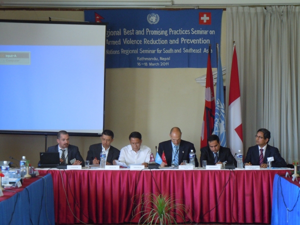In cooperation with the Government of Nepal, UNDP, and the secretariat of the Geneva Declaration on Armed Violence and Development, UNRCPD organised the ‘Regional Best and Promising Practices seminar on Armed Violence Reduction and Prevention for South and Southeast Asia’ in Kathmandu. Representatives of 17 States from South and Southeast Asia, as well as various civil society organisations, participated in the seminar to examine specific topics related to armed violence, including youth, gender and urban and rural violence. The aim of the seminar was also to provide an opportunity to exchange international, regional and national experiences, best practices, and lessons learned to address armed violence in South and Southeast Asia. The project was made possible by the financial support of the Government of Switzerland.