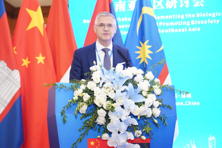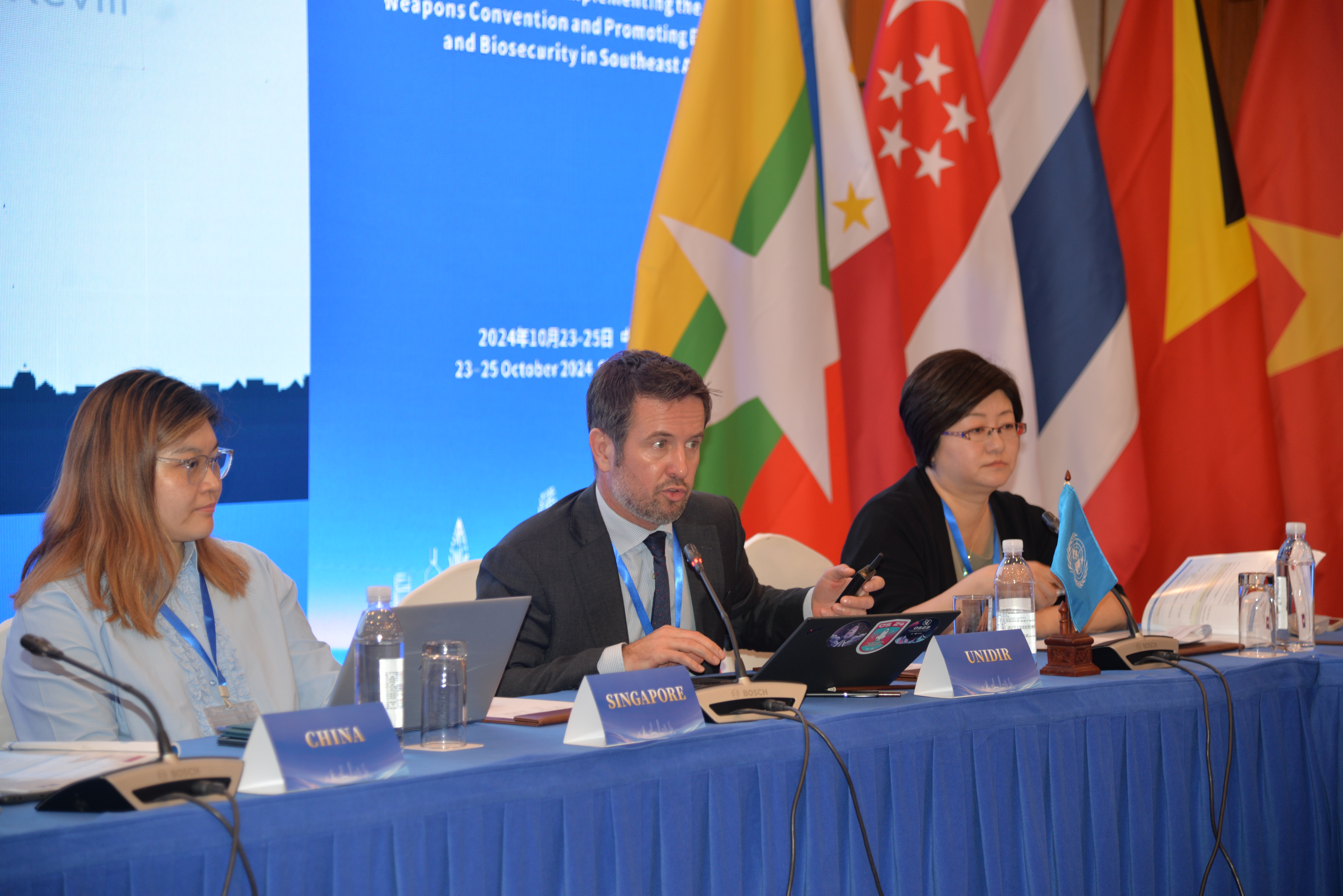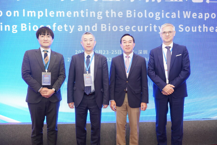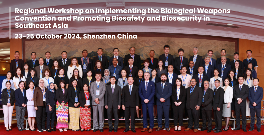 From 23 to 25 October 2024, UNRCPD co-organized a regional workshop in Shenzhen, China, to enhance the implementation of the Biological Weapons Convention (BWC) and foster biosafety and biosecurity practices in Southeast Asia. Supported by the Governments of China and Lao PDR, the workshop brought together 35 participants from ASEAN Member States and Timor-Leste, alongside regional and international experts, to share insights and enhance collaboration.