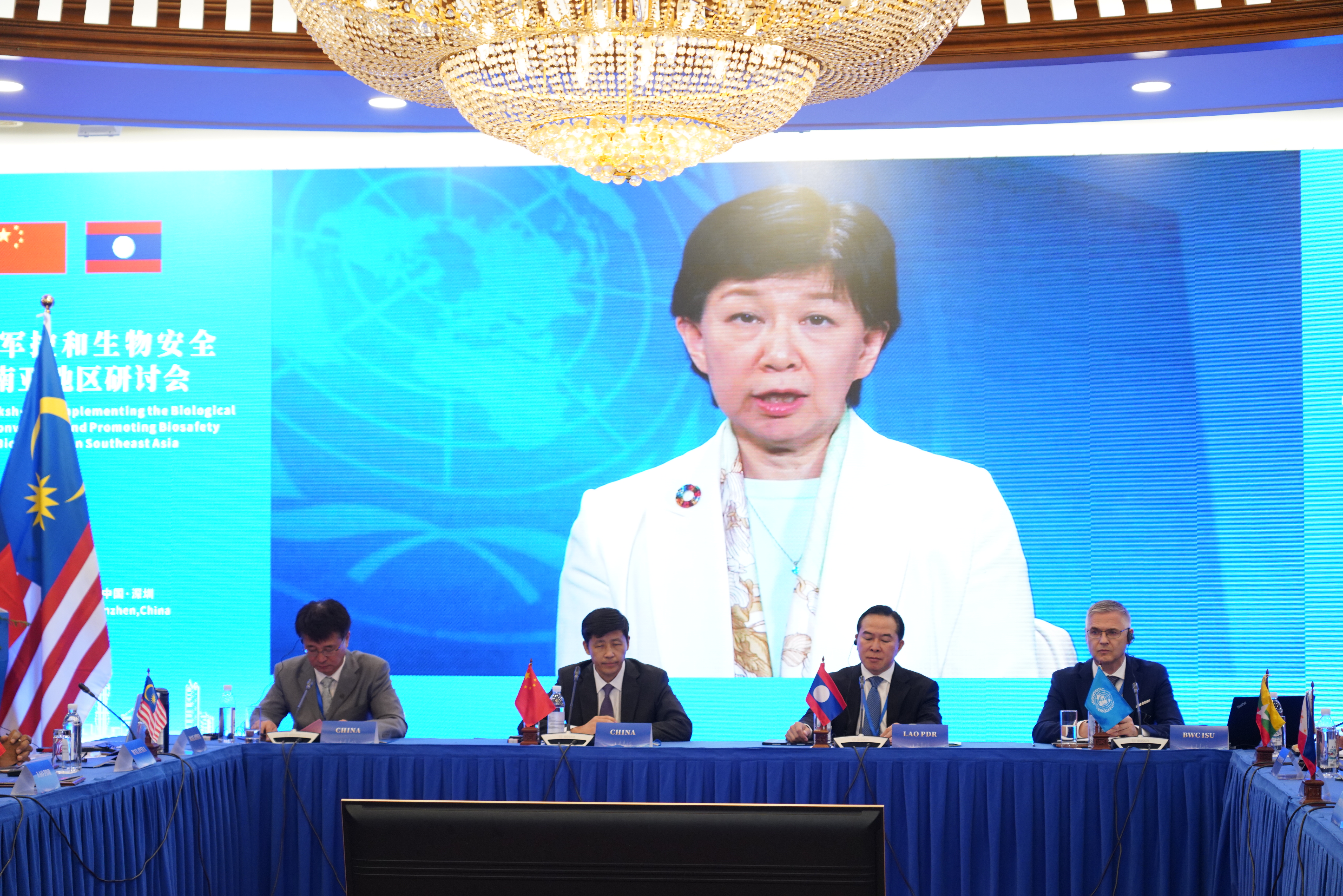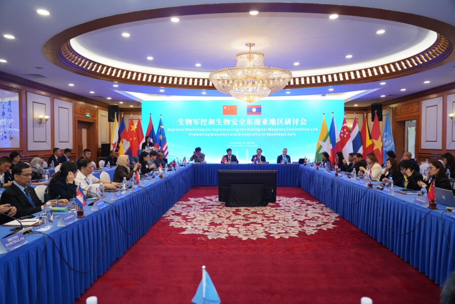Opening remarks were delivered by Ms. Izumi Nakamitsu, UN High Representative for Disarmament Affairs (via pre-recorded video), Mr. Sun Xiaobo, Director General of the Department of Arms Control at China’s Ministry of Foreign Affairs, and Mr. Daovy Vongxay, Lao PDR’s Ambassador to Geneva, all of whom emphasized the critical role of regional cooperation in addressing biosafety and biosecurity challenges.