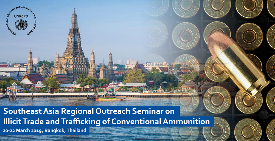 As part of its region-wide initiative to support States with the safe and secure management of conventional ammunition, the United Nations Regional Centre for Peace and Disarmament in Asia and the Pacific organized the Southeast Asia Regional Outreach Seminar on Trade and Trafficking of Illicit Conventional Ammunition, in Bangkok, Thailand, from 20-22 March 2019.