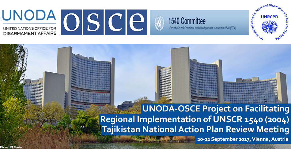 KATHMANDU, 20 September (Regional Centre for Peace and Disarmament) – The United Nations Regional Centre for Peace and Disarmament in Asia and the Pacific (UNRCPD) and the Organization for Security and Co-operation in Europe (OSCE) jointly organized a round-table meeting to review and further develop the National Action Plan (NAP) on the implementation of United Nations Security Council resolution 1540 (2004) of Tajikistan. The meeting took place from 20 to 22 September 2017 at the OSCE Head Quarters in Vienna, Austria